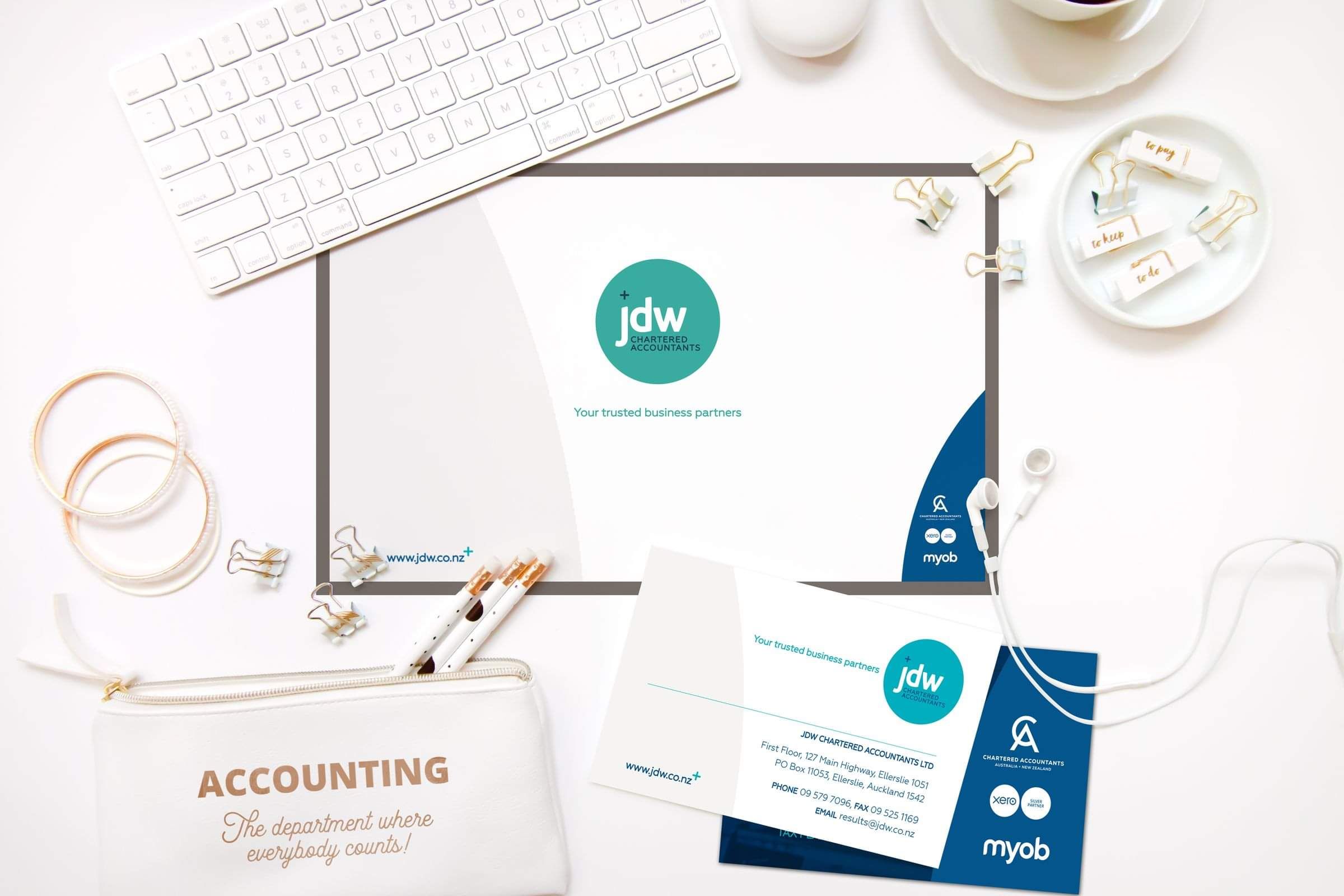 Finally, the team was in agreement and the brand was decided – Jolly, Duncan and Wells were now officially JDW Chartered Accountants Limited. Holding onto the initials kept the original name alive, while moving away from specific names enables the team to continue to grow the brand into the future.